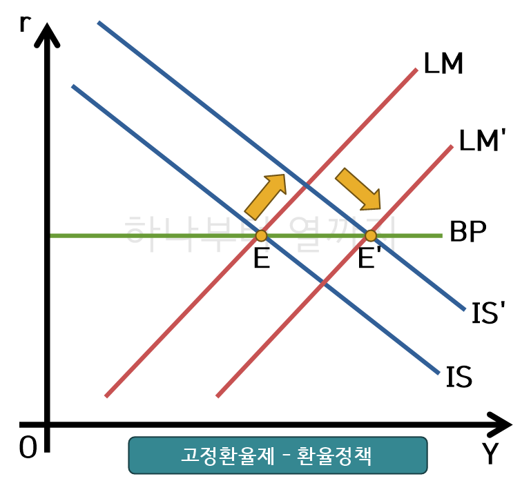 고정환율제에서는 정책에 따른 외국시장과 자국시장의 불균형을 통화량 조정을 통해 해결합니다.