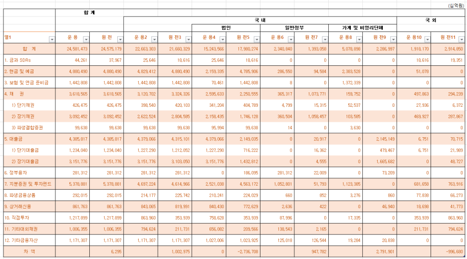 이제 금융자산/부채잔액표를 살펴보겠습니다.