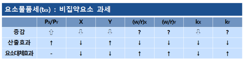 위 사실을 토대로 우리는 산출효과는 과세되는 재화의 집약요소에 귀착되며, 요소대체효과는 과세되는 집약요소에 귀착됨을 알 수 있습니다.