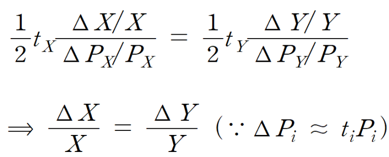 두 재화 X, Y에 대해서 다음이 성립합니다.