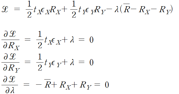 특히, 마지막 식은 최적조세의 비율은 각 재화를 동일비율만큼 감소시키게 하는 것임을 뜻합니다.